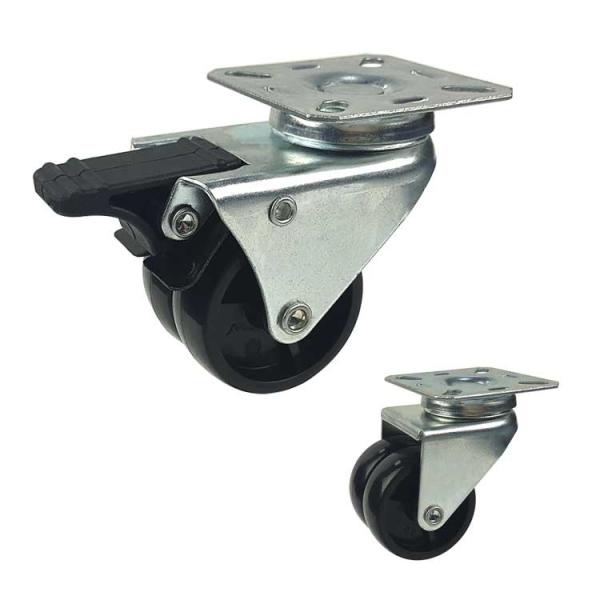 Product Name : 3 inch 198lbs swivel plate black plastic dual wheel light duty casters with brake